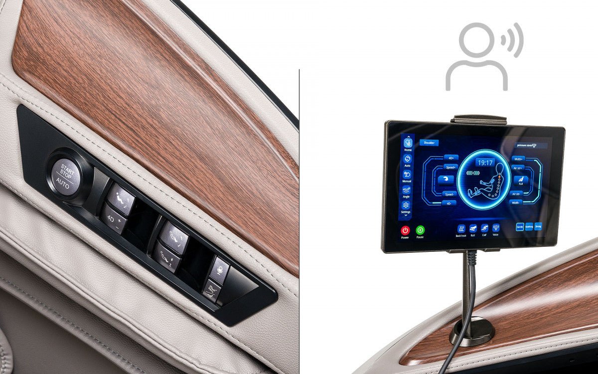 Programe - automate Programe - memorabile individual Programe - manuale Mecanism cu role - 4D Reglare continuă a spătarului Tapițerie detașabilă a spătarului Ieșire vocală Control vocal Funcție temporizator cu oprire automată Role de transport Priză de încărcare USB Setare reglabilă a timpului Poziție Zero Gravity (fără greutate) Design Zero Wall
