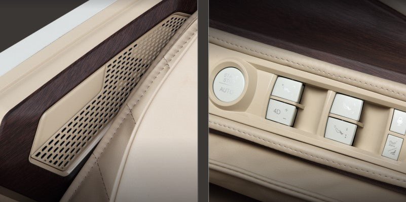 Airbag-uri - picioare Airbag-uri - reglabile la intensitate Airbag-uri - umeri Airbag-uri - antebrațe Airbag-uri - viței Iluminare ambientală Audio - Bluetooth Audio - difuzoare integrate Comenzi - integrate Comenzi - tabletă Memorie utilizator Senzor al nivelului de oxigen din sânge Suport picioare - reglabil continuu Suport picioare - electr.
